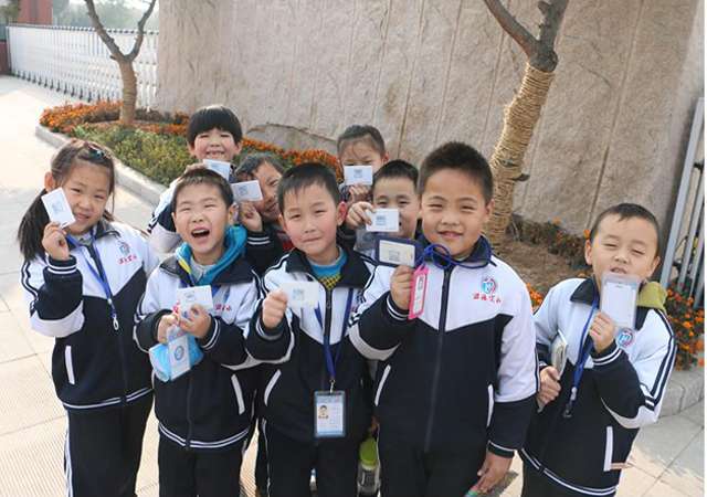 学生拿到卡后开心地合影